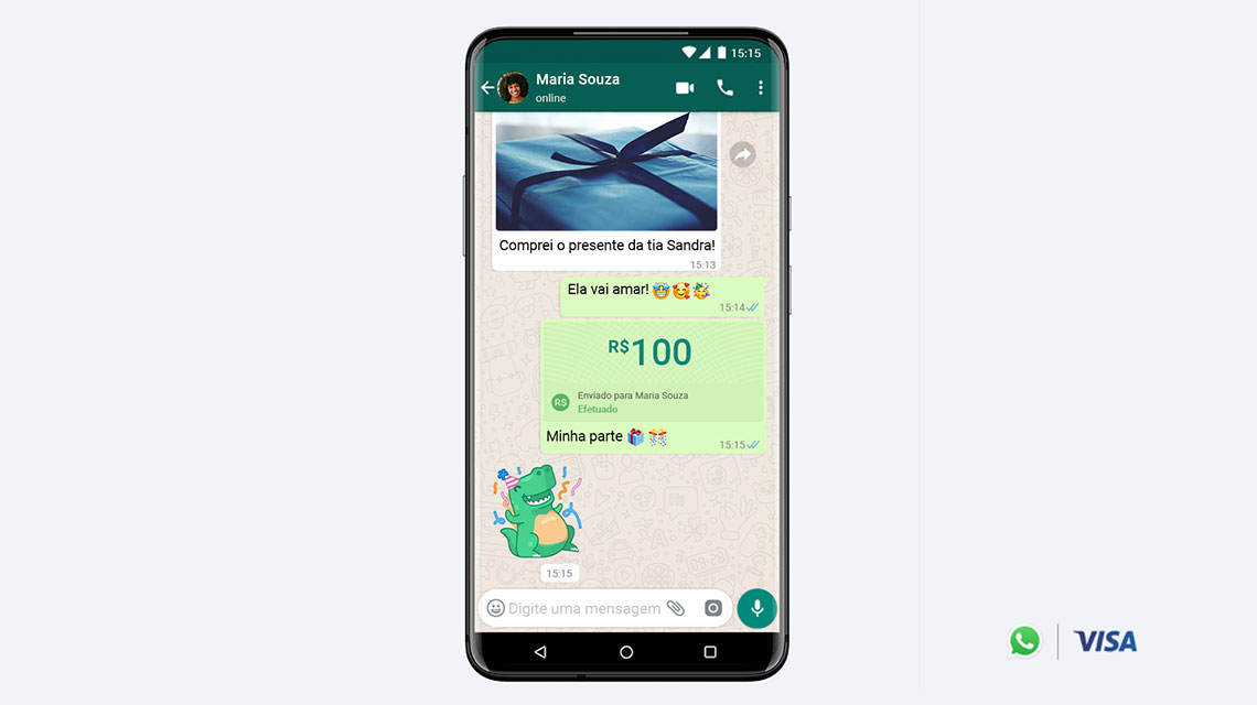 Sao Paulo y San Francisco - 15 de junio del 2020 – Visa Inc. (NYSE:V) anunció hoy que está trabajando con Facebook para ayudar a potenciar en Brasil la nueva función de pagos en WhatsApp. Con la incorporación de la confiable tecnología de pagos de Visa, los usuarios de WhatsApp ahora podrán recibir y enviar dinero de forma rápida y segura a familiares y amigos, y hasta hacer compras en pequeñas empresas, en la popular plataforma de mensajería global.